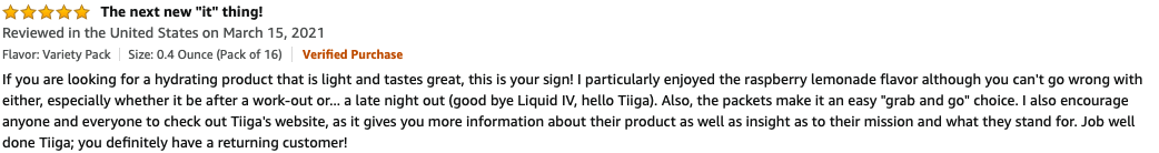 Tiiga comes with a 90 day, money-back guarantee. In fact, if you don't like it, we will refund your money no questions asked. That's how confident we are that you will LOVE our products.